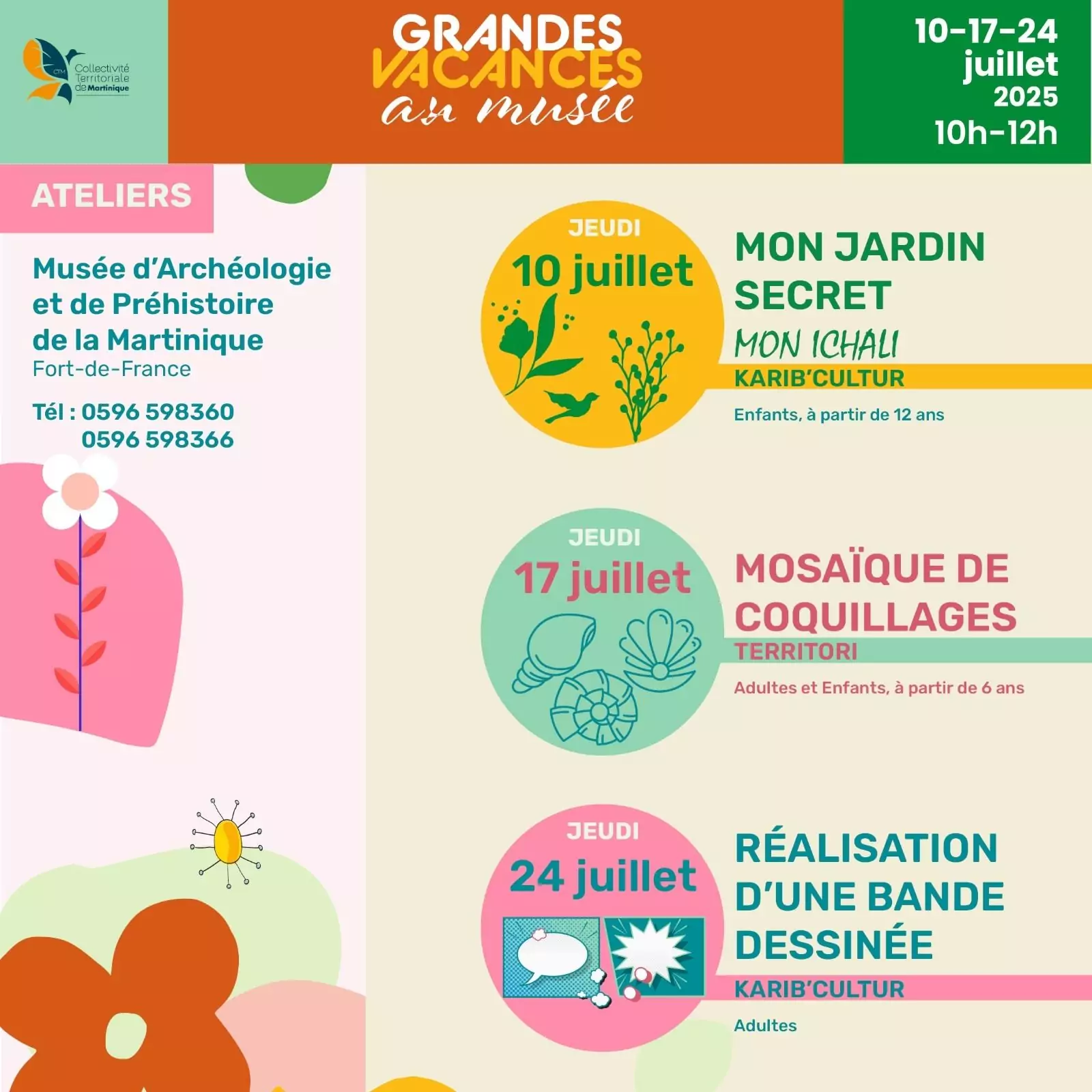 Le Musée d’Archéologie et de Préhistoire de la Martinique propose trois ateliers participatifs ouverts aux enfants comme aux adultes, pour créer, apprendre et s’émerveiller !