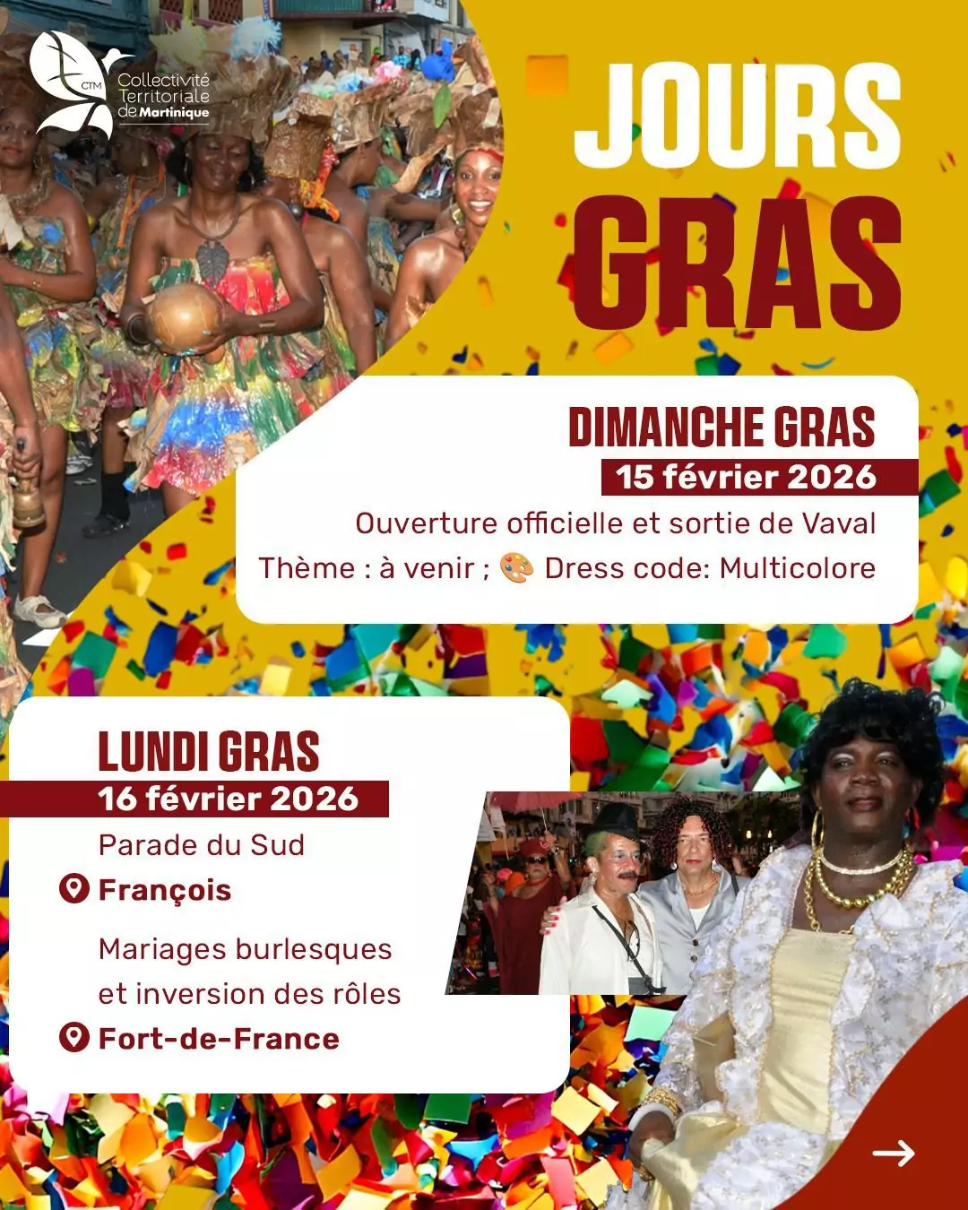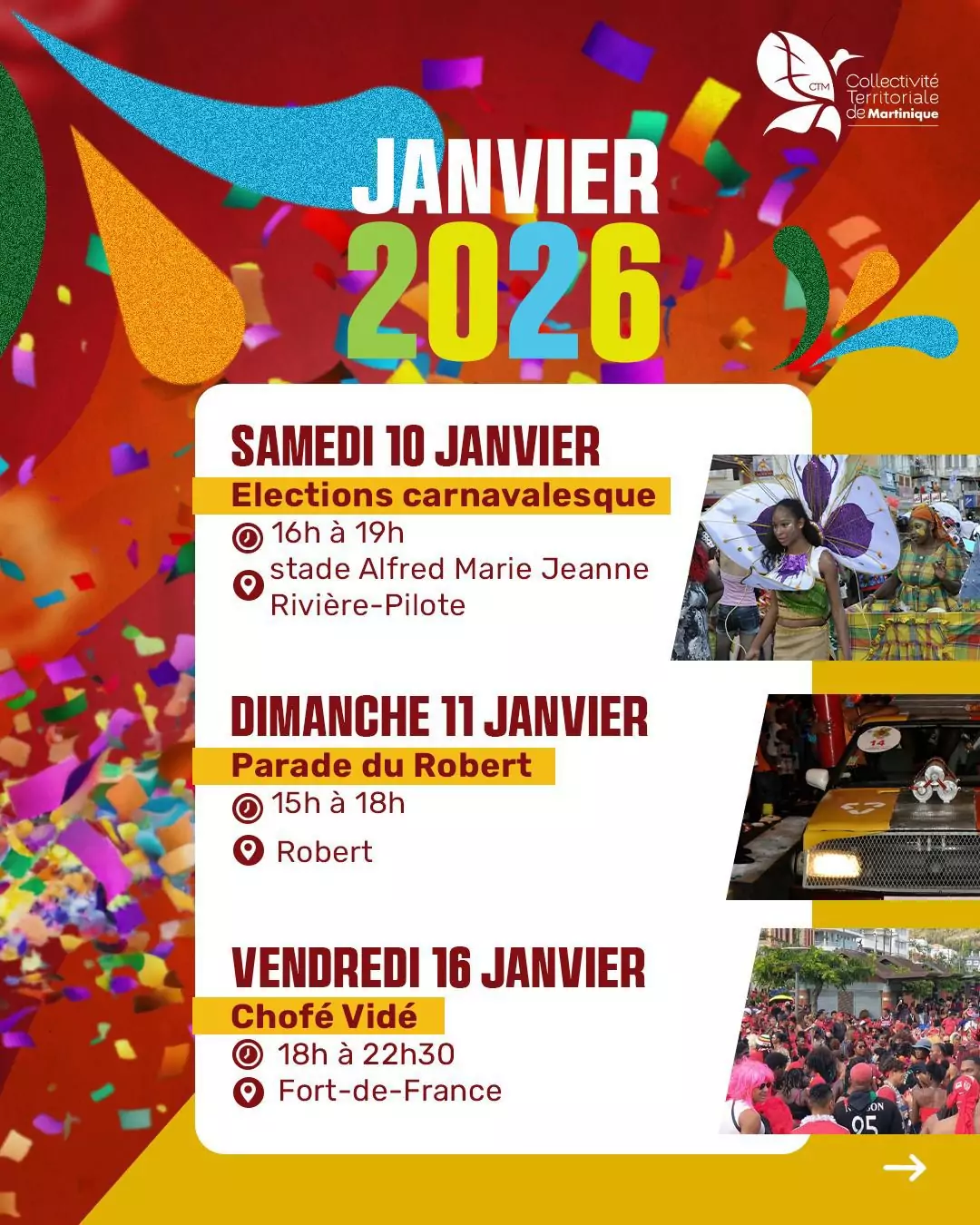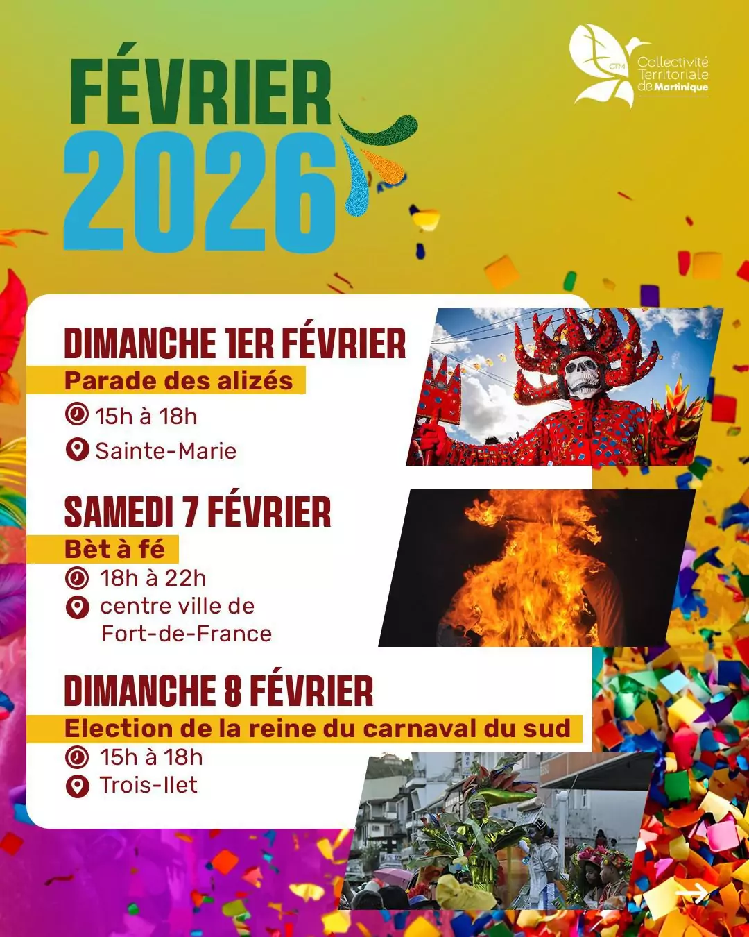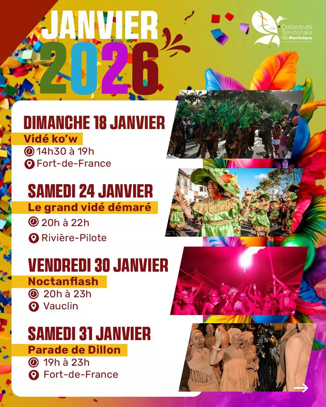 De janvier à février 2026, chaque date est une invitation à sortir, à célébrer, à transmettre et à faire vivre un patrimoine unique, porté par le peuple martiniquais.