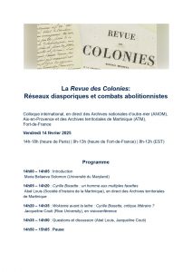 Nous vous donnons rendez-vous ce vendredi 14 février, à l’Auditorium Rose-Rosette, pour assister à un colloque international, en direct des Archives nationales d’outre-mer (ANOM), Aix-en-Provence et des Archives territoriales de Martinique (ATM), Fort-de-France :