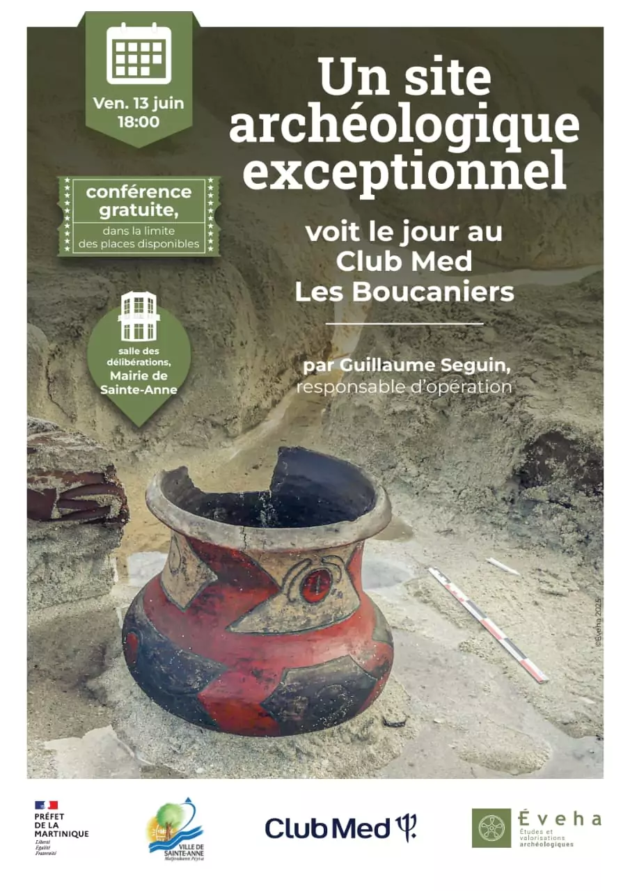 Dans le cadre des JEA (Journées Européennes de l’Archéologie), une conférence sur les fouilles archéologiques préventives de la Pointe Marin se tiendra ce Vendredi 13 Juin 2025 à 18h en Salle des délibérations à la Mairie de Sainte-Anne.
