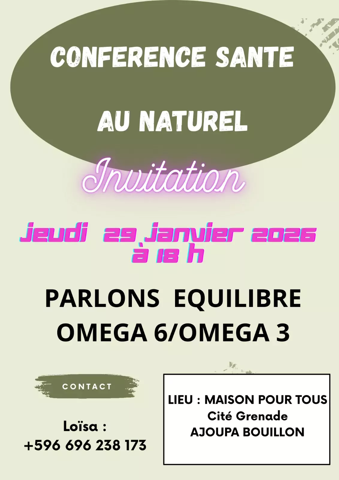CONFÉRENCE SANTÉ AU NATUREL À CITÉ GRENADE, AJOUPA BOUILLON