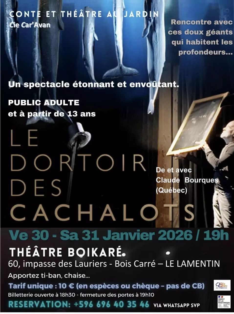 CONTE ET THÉÂTRE AU JARDIN « LE DORTOIR DES CACHALOTS » AU THÉÂTRE BOIKARÉ, LE LAMENTIN