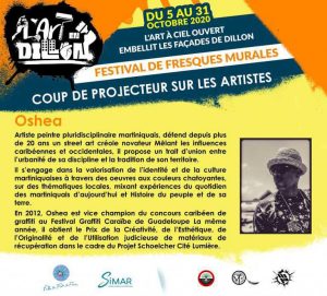 Dans le cadre de la rénovation des résidences situées au Nord du quartier Dillon et dont les pignons et façades sont visibles de l’Autoroute, la Société Immobilière de la Martinique‐ SIMAR, la Ville de Fort de France et les représentant.e.s d’habitant.e.s du quartier, ont décidé de faire réaliser de nouvelles fresques sur les 6 pignons de murs existants.