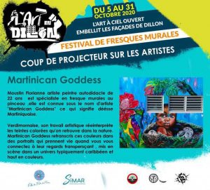 L’art à ciel ouvert embellit les façades de Dillon avec les Artistes et Association doudou’style, James_oner_art, Martinican godess, Oshea, Nuxuno Xän, NPL • Mada Paint •, Vis ton rêve, Mi Lavi, Arômes Kréyol Design.