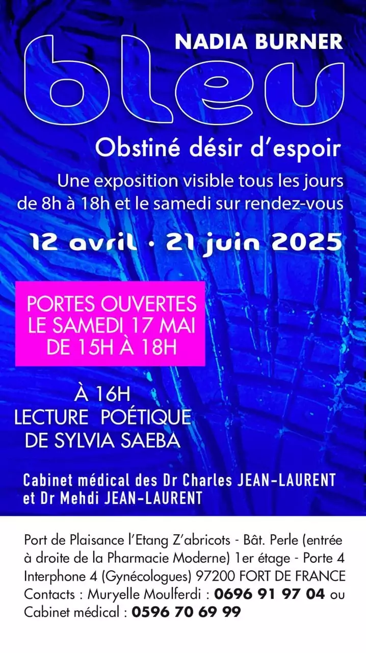 EXPOSITION NADIA BURNER « BLEU » AU PORT DE PLAISANCE ÉTANG Z’ABRICOT, FORT DE FRANCE