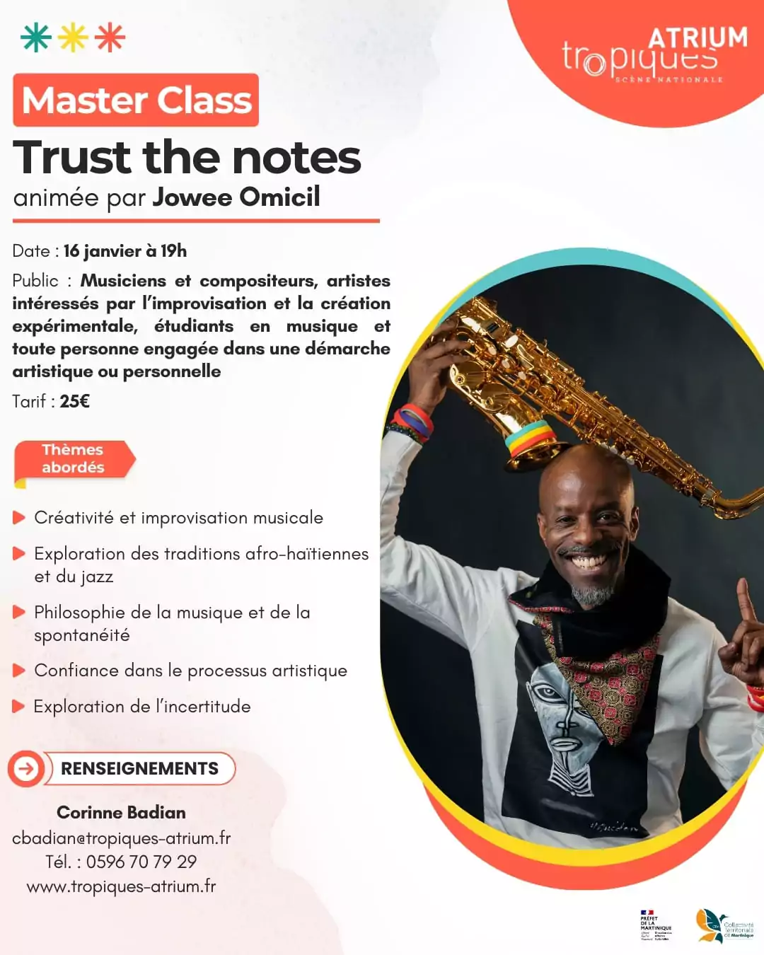 – MASTER CLASS : Trust the note, animée par Jowee Omicil – vendredi 16 janvier à 19h30