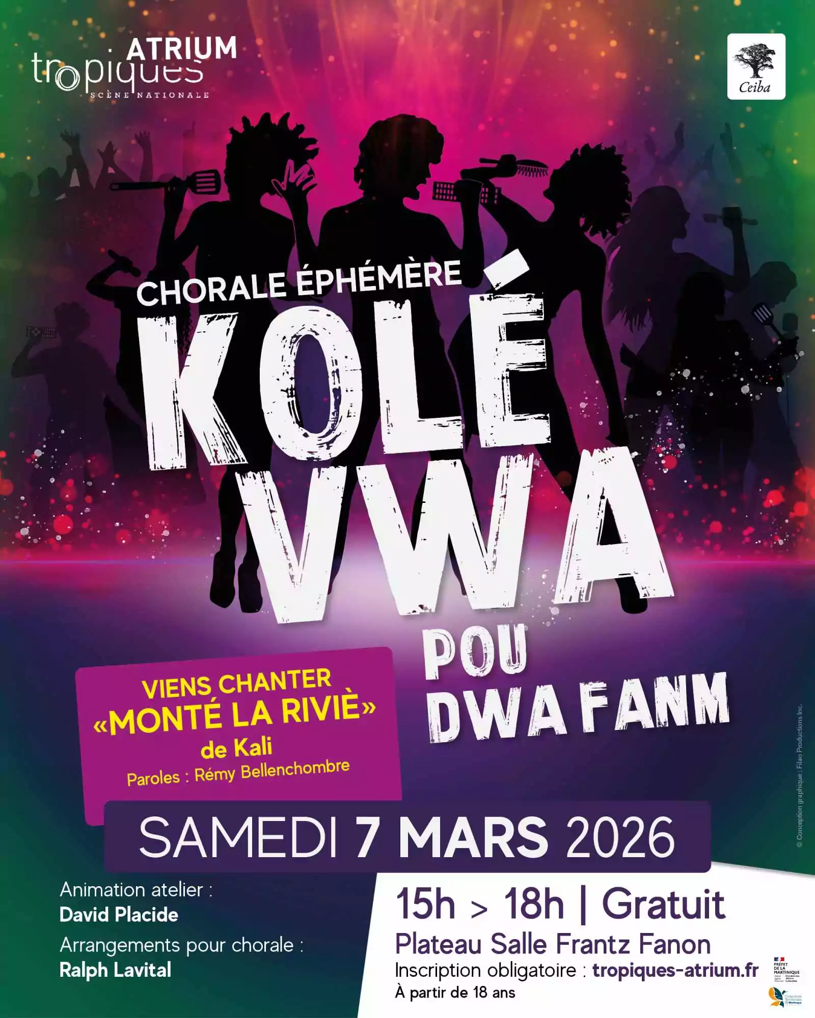 Du 27 février au 21 mars 2026, à Tropiques Atrium, Arts visuels, Cinéma, Conte, Danse, Musique, Slam et Théâtre seront au rendez-vous de cette 3ème édition du CEIBA !!!