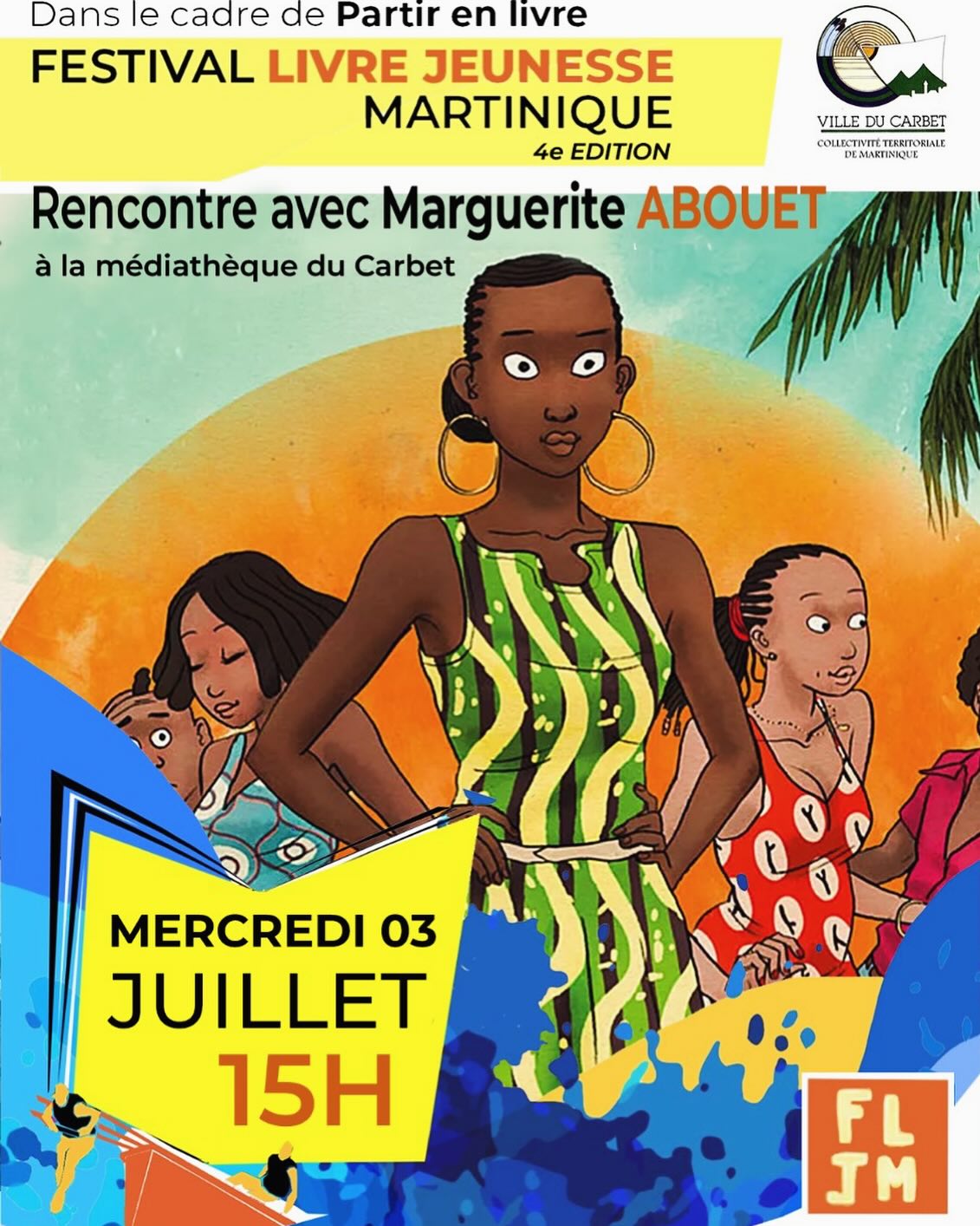 La Médiathèque du Carbet a l’immense plaisir de vous inviter à echanger avec Marguerite ABOUET, autrice des bandes dessinées « Aya de Yopougon » et « Akissi ».