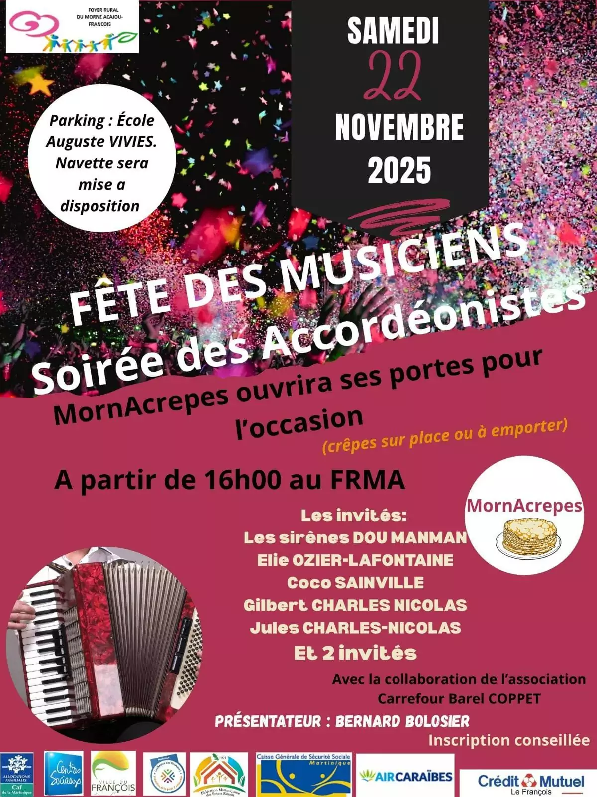 FÊTE DES MUSICIENS & MORNACRÊPES AU FOYER RURAL DE MORNE ACAJOU, LE FRANÇOIS