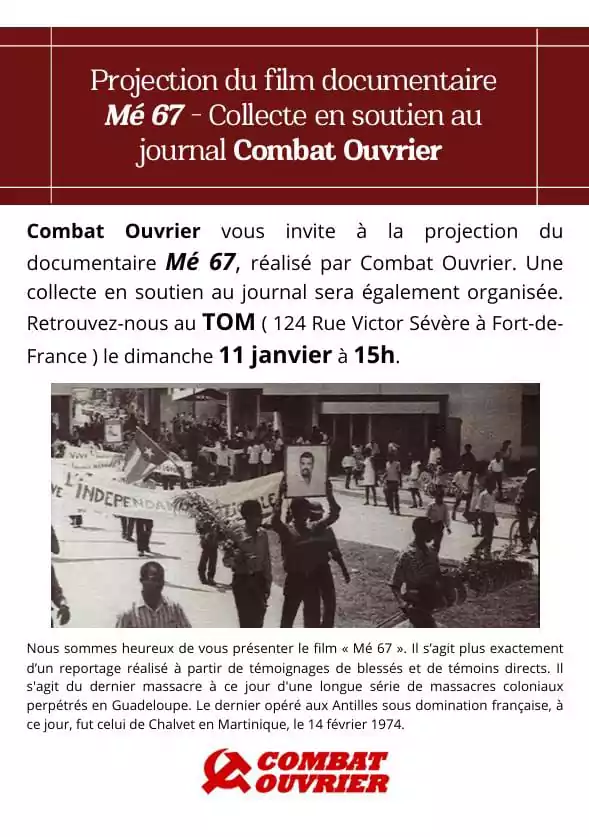 FILM DOCUMENTAIRE « MÉ 67 » PAR COMBAT OUVRIER AU TOM, FORT DE FRANCE
