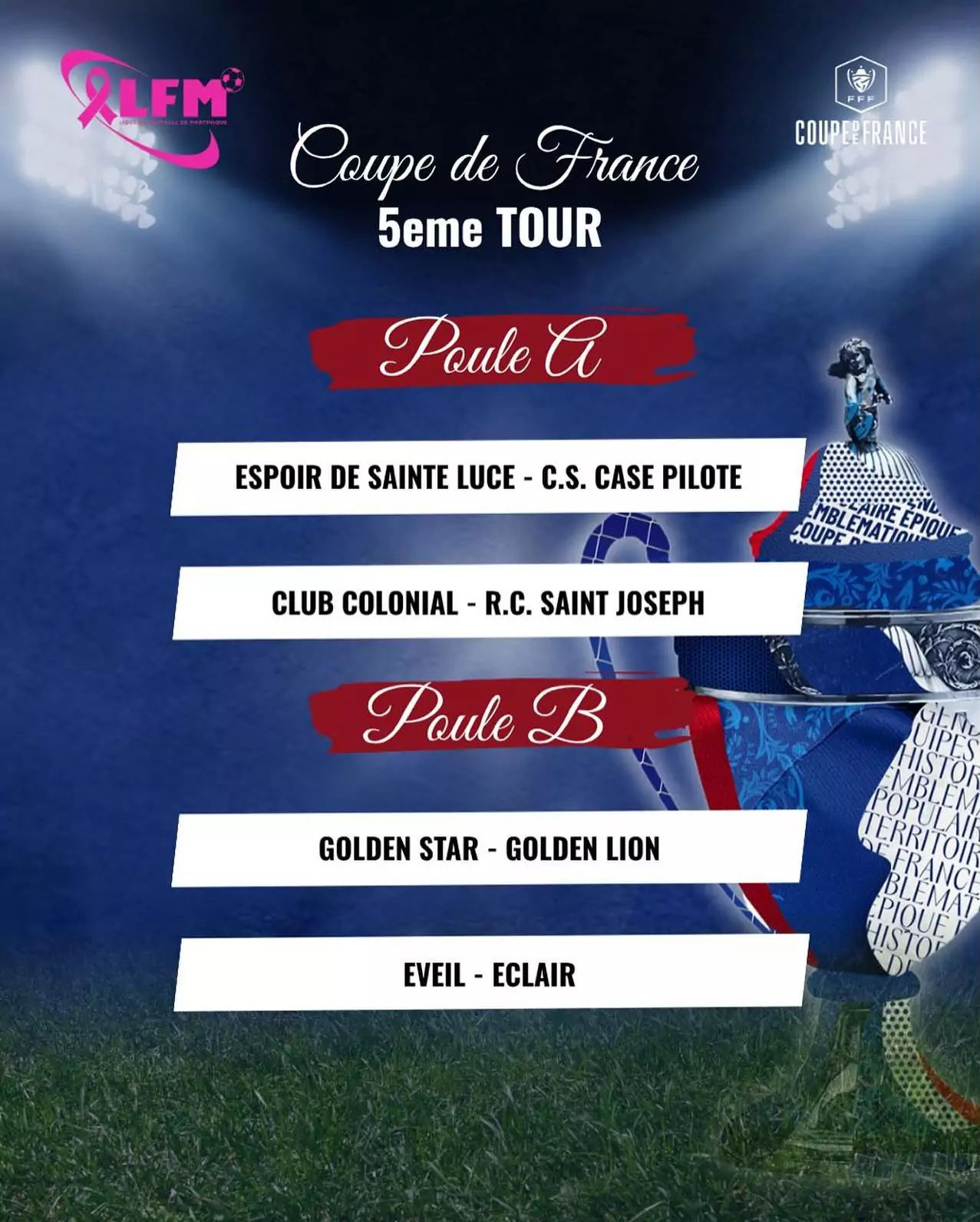 Un des chocs de ce tour! Après son carton plein au tour précédent, le Club Colonial accueille le RC Saint Joseph. Les Foyalais sauront-ils confirmer leur excellente forme du moment ? Le RC Saint Joseph vainqueur sortant de la coupe de France zone Martinique ne se laissera pas faire !