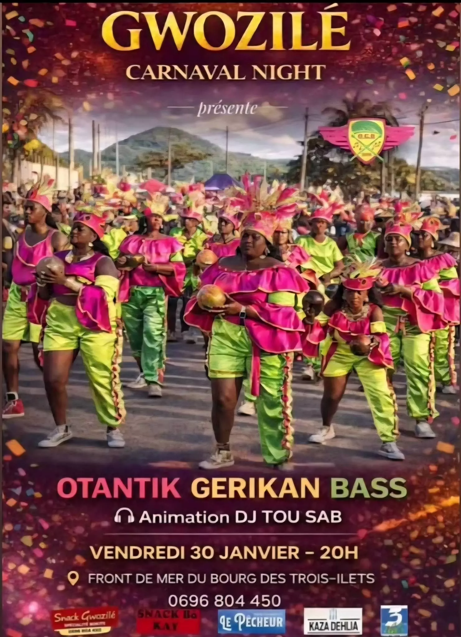 GWOZILÉ CARNAVAL NIGHT « OTANTIK GERIKAN BASS » SUR LE FRONT DE MER DU BOURG, LES TROIS ÎLETS