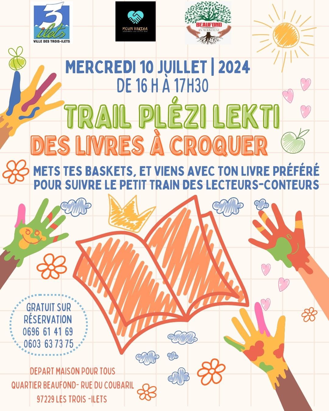 L’association MOUN KARIBA et l’ association Beaufond en Mouvement en collaboration avec la ville des Trois -Ilets,vous proposent de participer au « TRAIL PLÉZI LEKTI  » ( plaisir de la lecture); dans le cadre de la 4ème édition du livre jeunesse de Martinique.