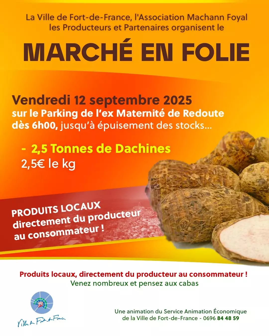 MARCHÉ « 2,5 TONNNES DE DACHINES » SUR PARKING EX MATERNITÉ DE REDOUTE, FORT DE FRANCE