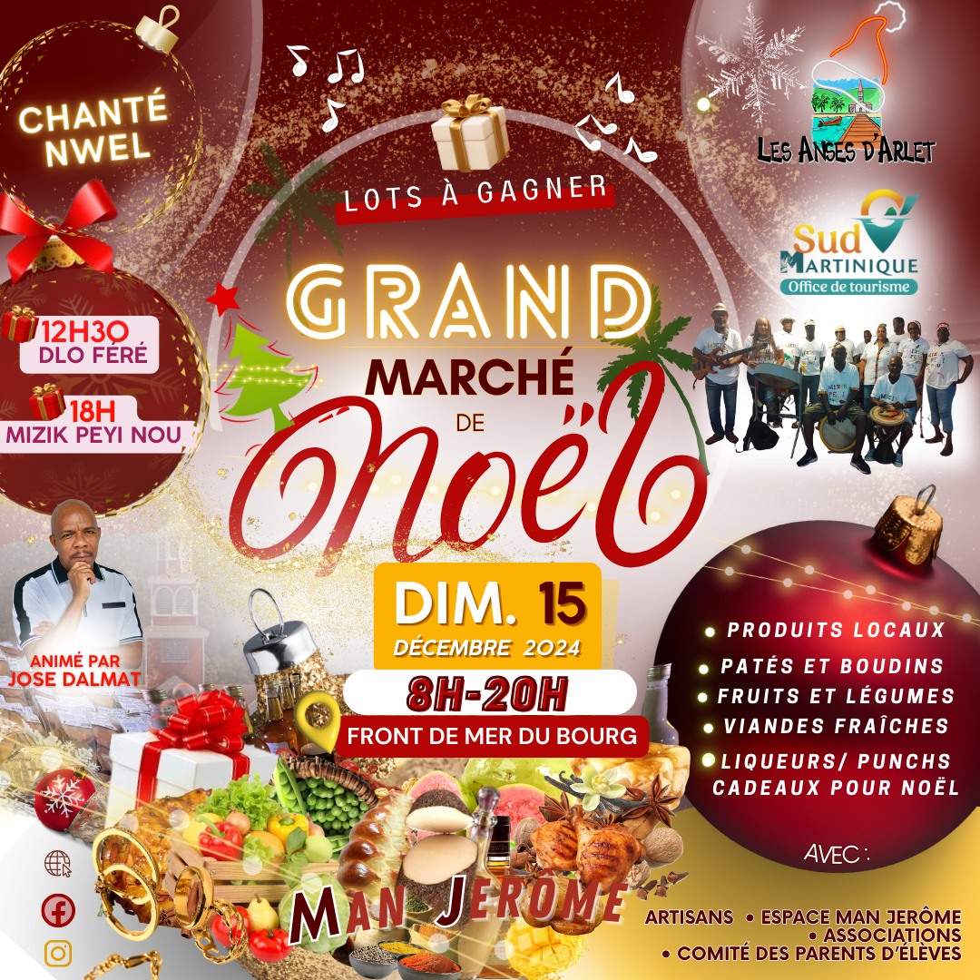 La Ville organise en partenariat avec l’Office de Tourisme SUD Martinique un grand marché de Noël* animé par José Dalmat :