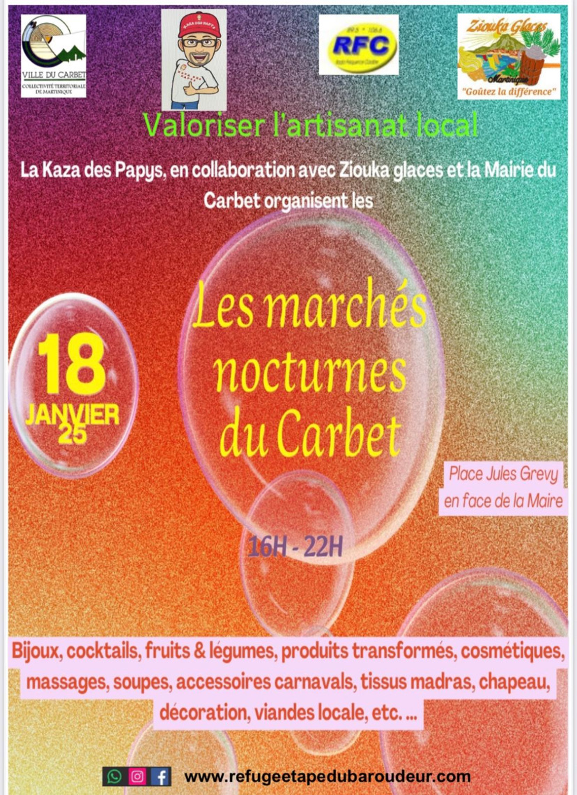 La Kaza des Pays en partenariat avec Ziouka glaces et la mairie du Carbet organisent Les marchés nocturnes du Carbet, pour valoriser l’artisanat local
