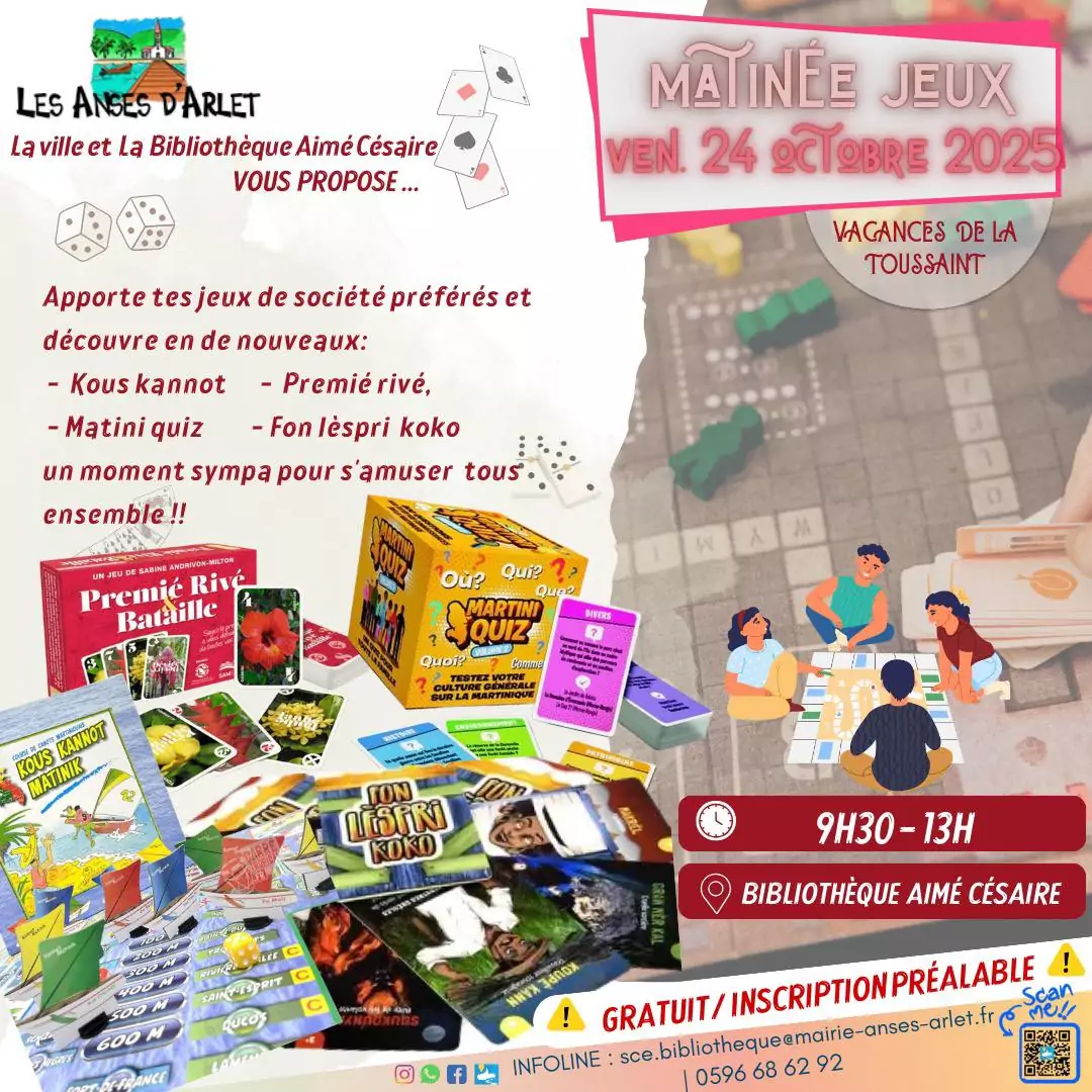 MATINÉE JEUX À LA BIBLIOTHÈQUE AIMÉ CÉSAIRE, LES ANSES D’ARLET
