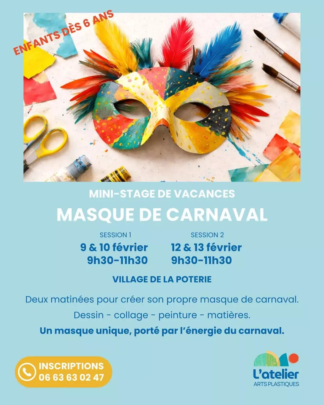 MINI STAGE ARTS PLASIQUES « MASQUE DE CARNAVAL » PAR L’ATELIER ARTS PLASTIQUES AU VILLAGE DE LA POTERIE, LES TROIS ÎLETS