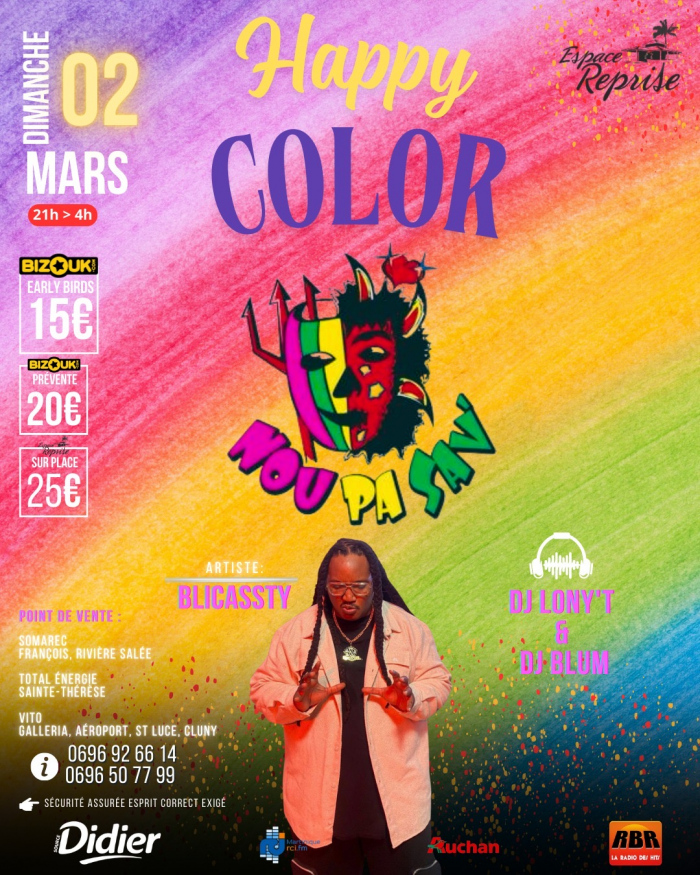 Dimanche 02 Mars 2025 venez vivre l’ouverture exceptionnelle de ce carnaval 2k25 à l’espace reprise avec le mythique groupe Nou Pa Sav accompagné de l’artiste incontournable Blicassty