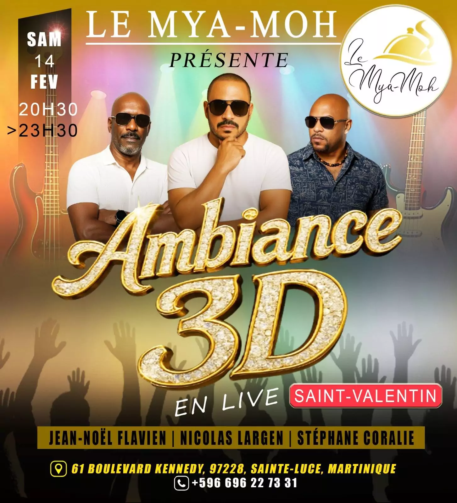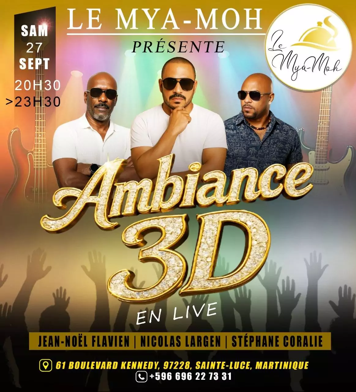 MUSIQUE LIVE « AMBIANCE 3D » AU MYA MOH, SAINTE LUCE