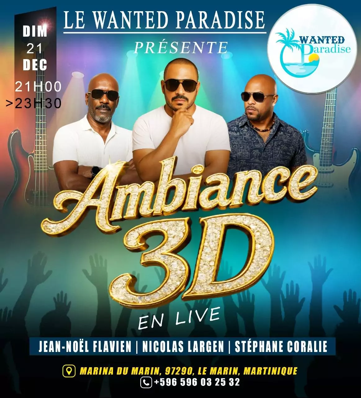 MUSIQUE LIVE « AMBIANCE 3D » AU WANTED PARADISE, LE MARIN