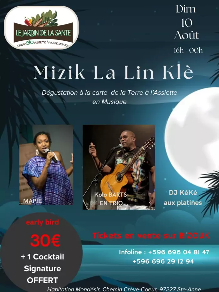 MUSIQUE LIVE « MIZIK LA LIN KLÈ » AU JARDIN DE LA SANTÉ, SAINTE ANNE