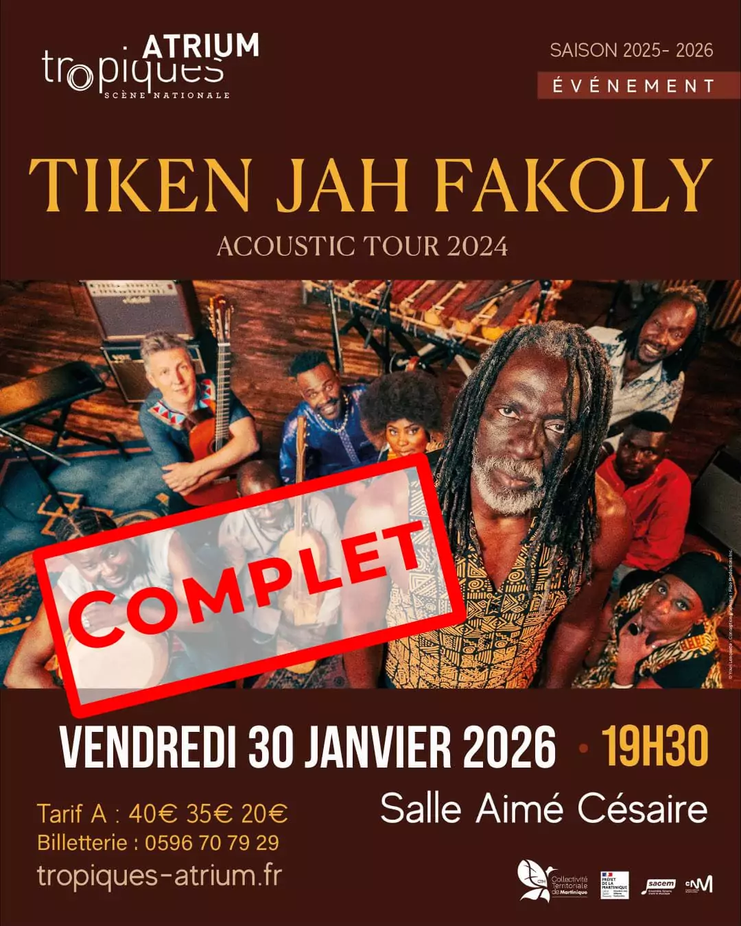 MUSIQUE « TIKEN JAH FAKOLY » À TROPIQUES ATRIUM, FORT DE FRANCE
