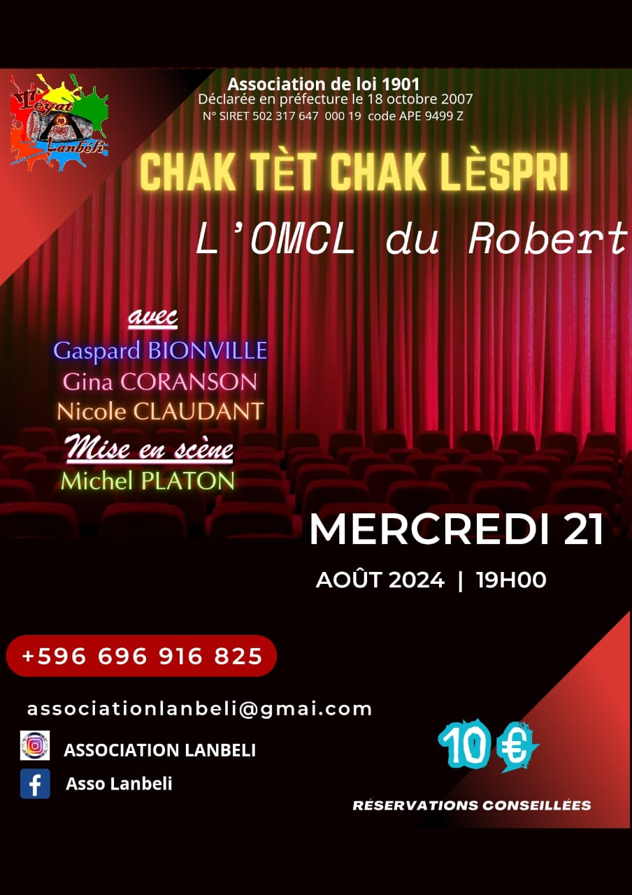 L’association Lanbéli vous invite à sa pièce de théâtre : « Chak tèt Chak lèspri » samedi 9 mars 2024 à 19h au local associatif de Monnérot.