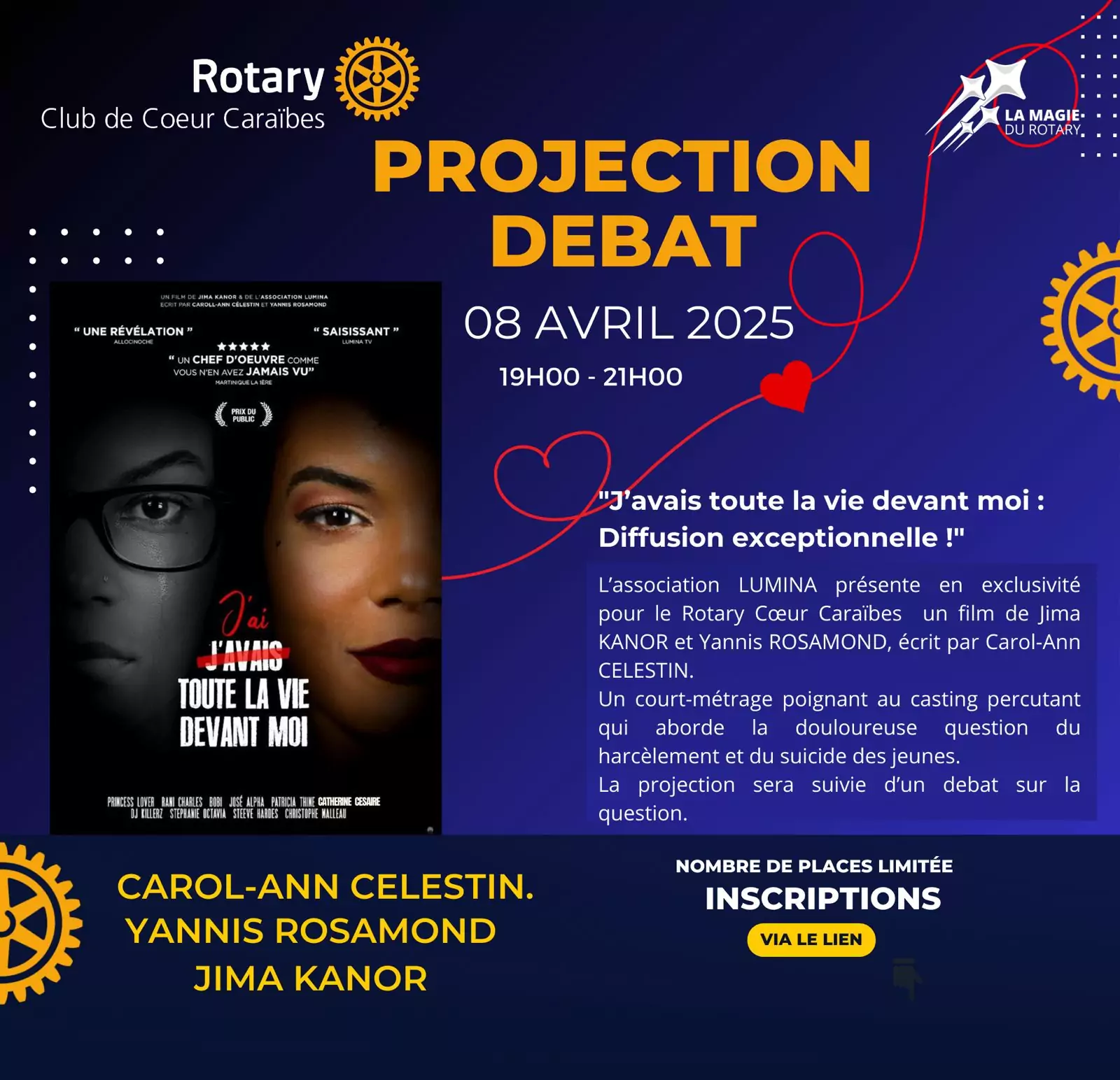 L’association LUMINA présente en avant première pour le Rotary Cœur Caraïbes, un film de Jima KANOR et Yannis ROSAMOND, écrit par Carol-Ann CELESTIN.