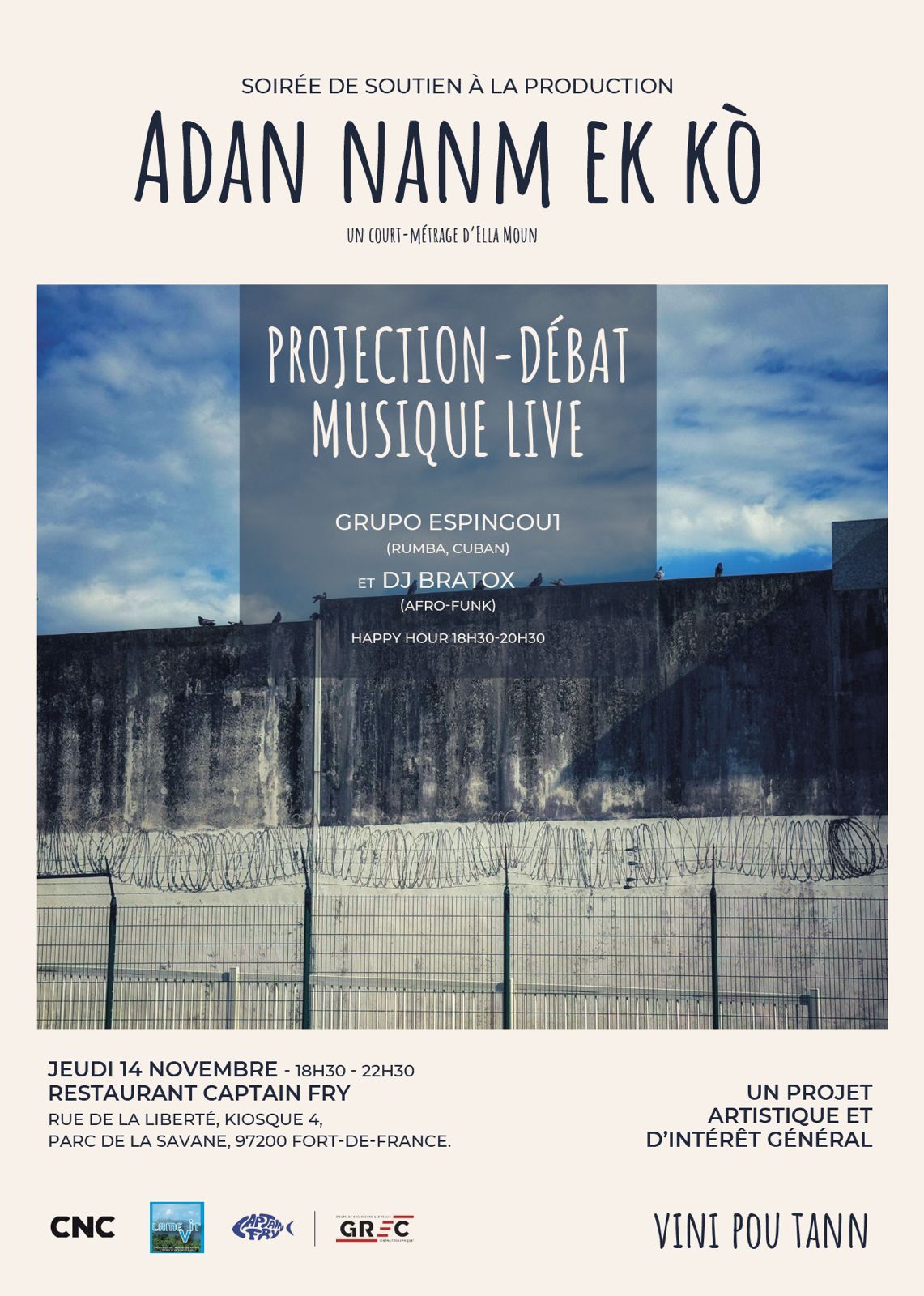 ont le plaisir de vous inviter à une soirée de soutien à la production du court-métrage Adan nanm ek kò (flyer ci-joint).