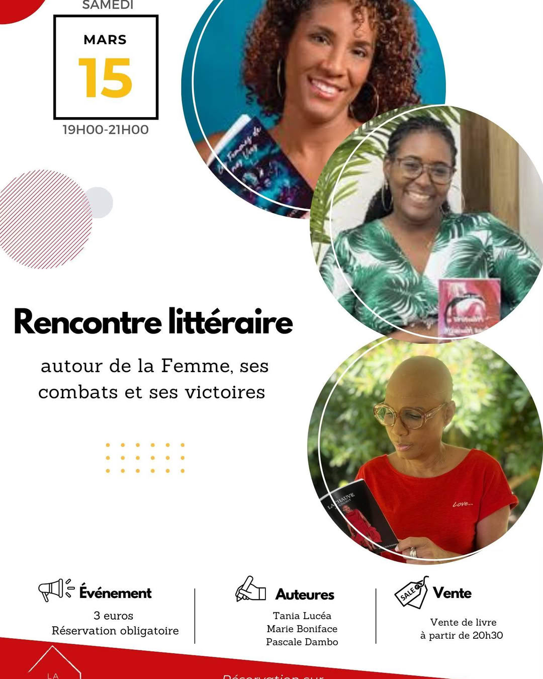 Rendez-vous le Samedi 15 Mars pour échanger autour du sujet de la Femmes en présence des auteures Marie Boniface, Pascale Dambo et Tania Lucéa.