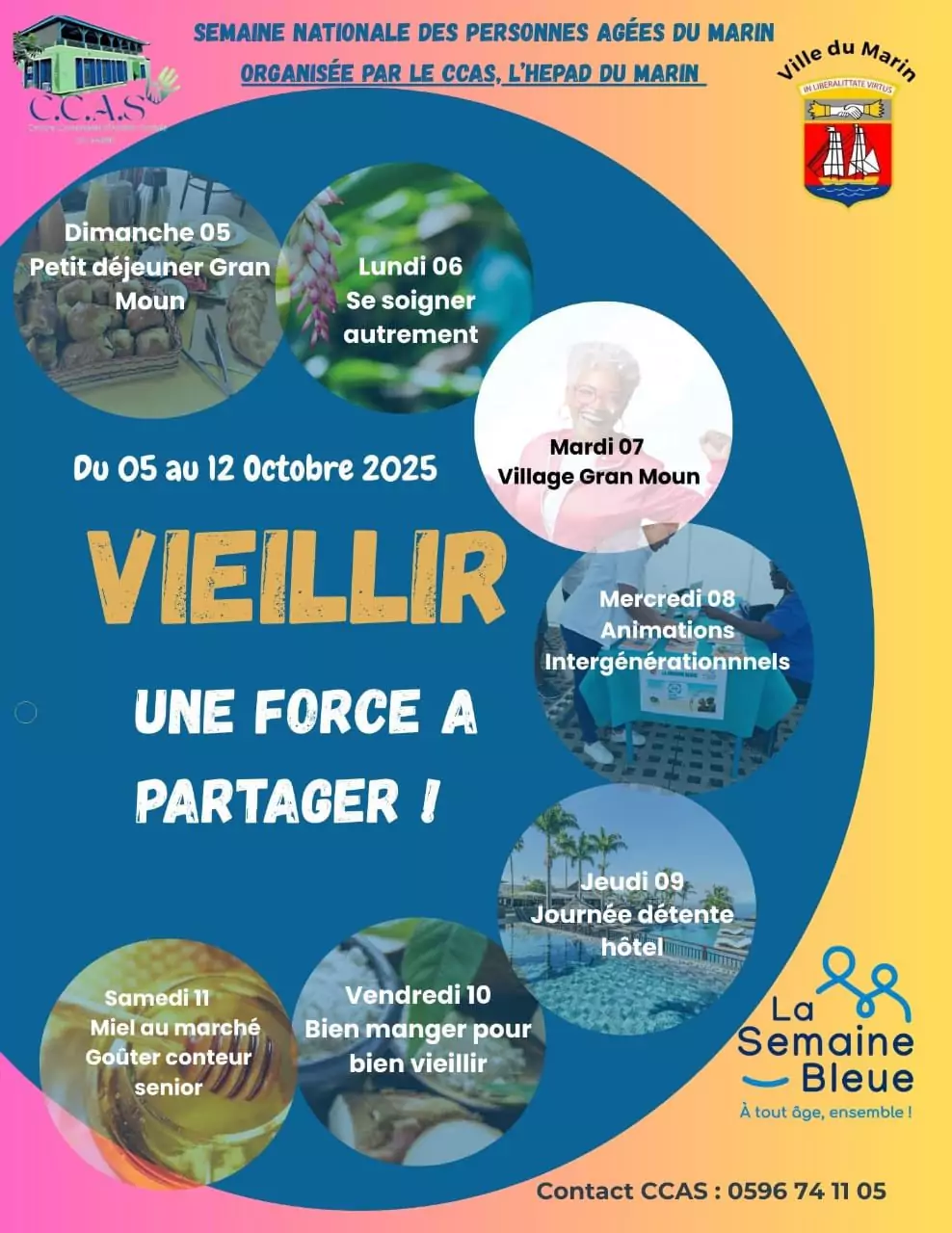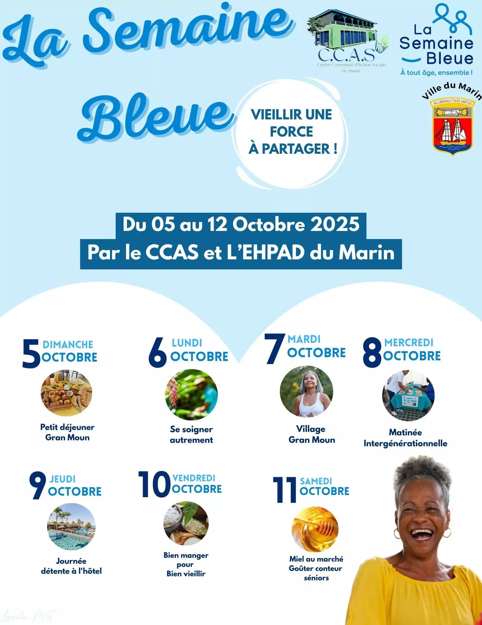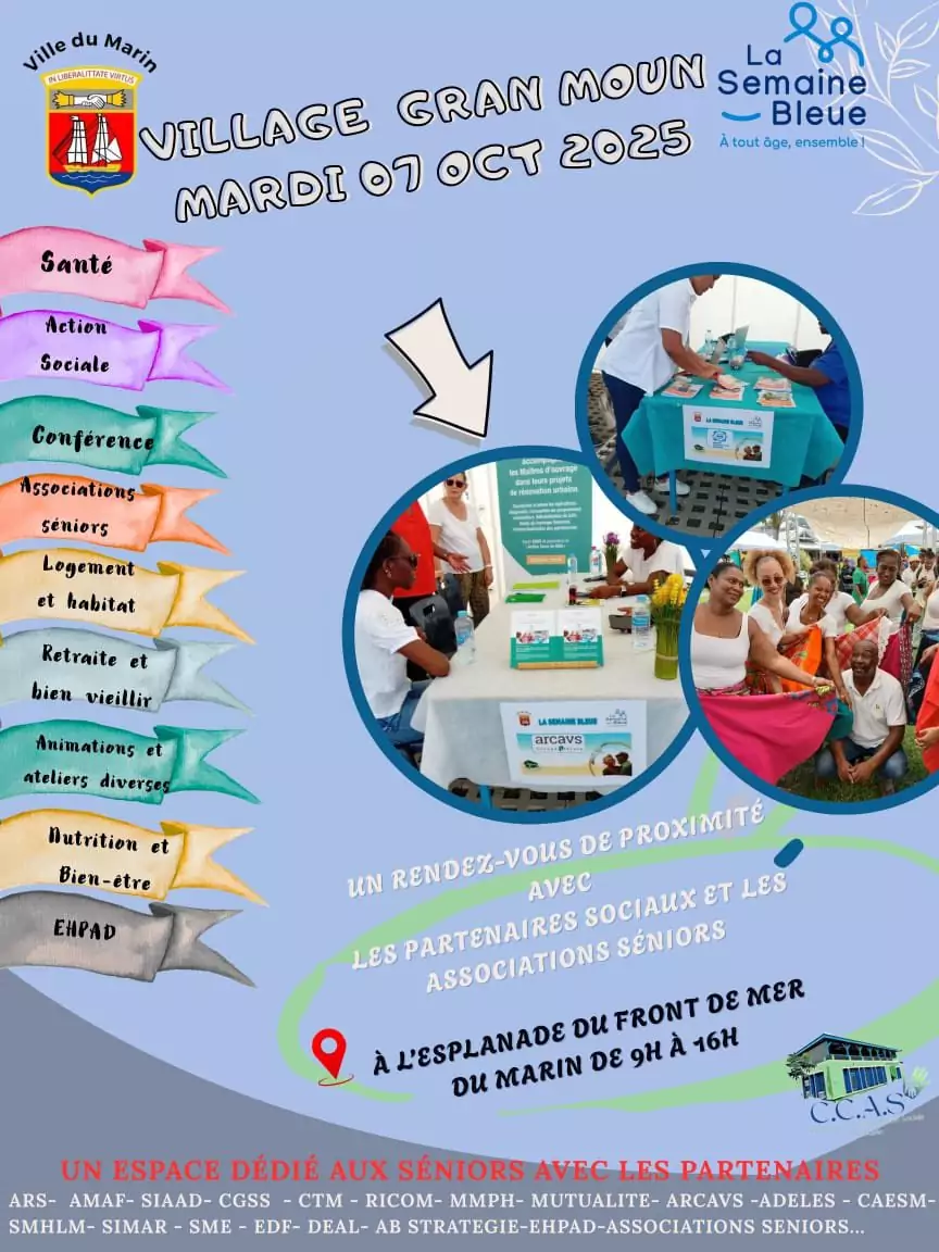 Du 5 au 12 octobre, le CCAS de la ville du Marin vous donne rendez-vous pour partager des moments conviviaux, solidaires et festifs autour de nos aînés