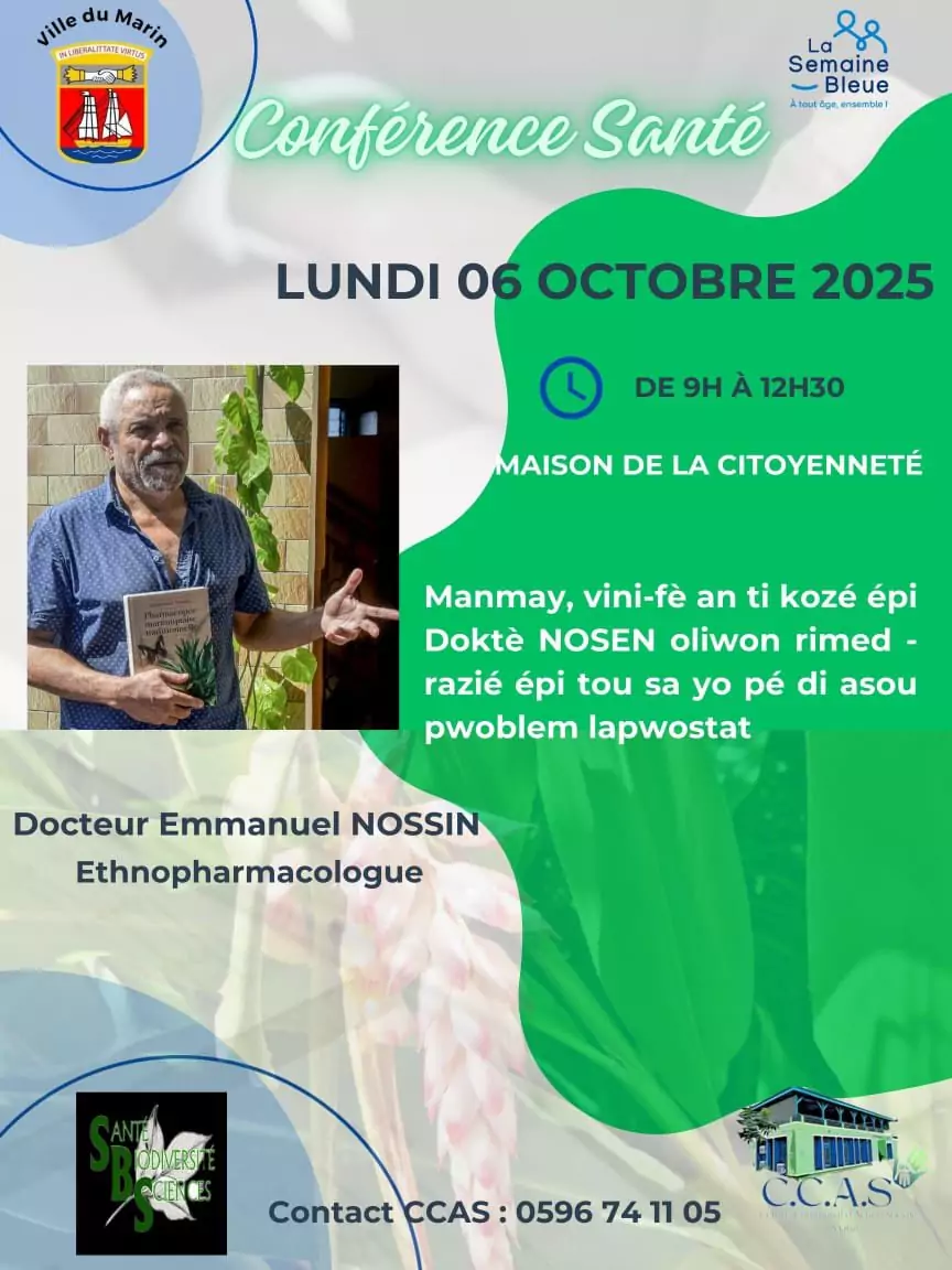 Le lundi 6 Octobre de 9h à 12h30 à la Maison de la citoyenneté : Conférence Santé avec le Docteur Emmanuel NOSSIN, Ethnopharmacologue