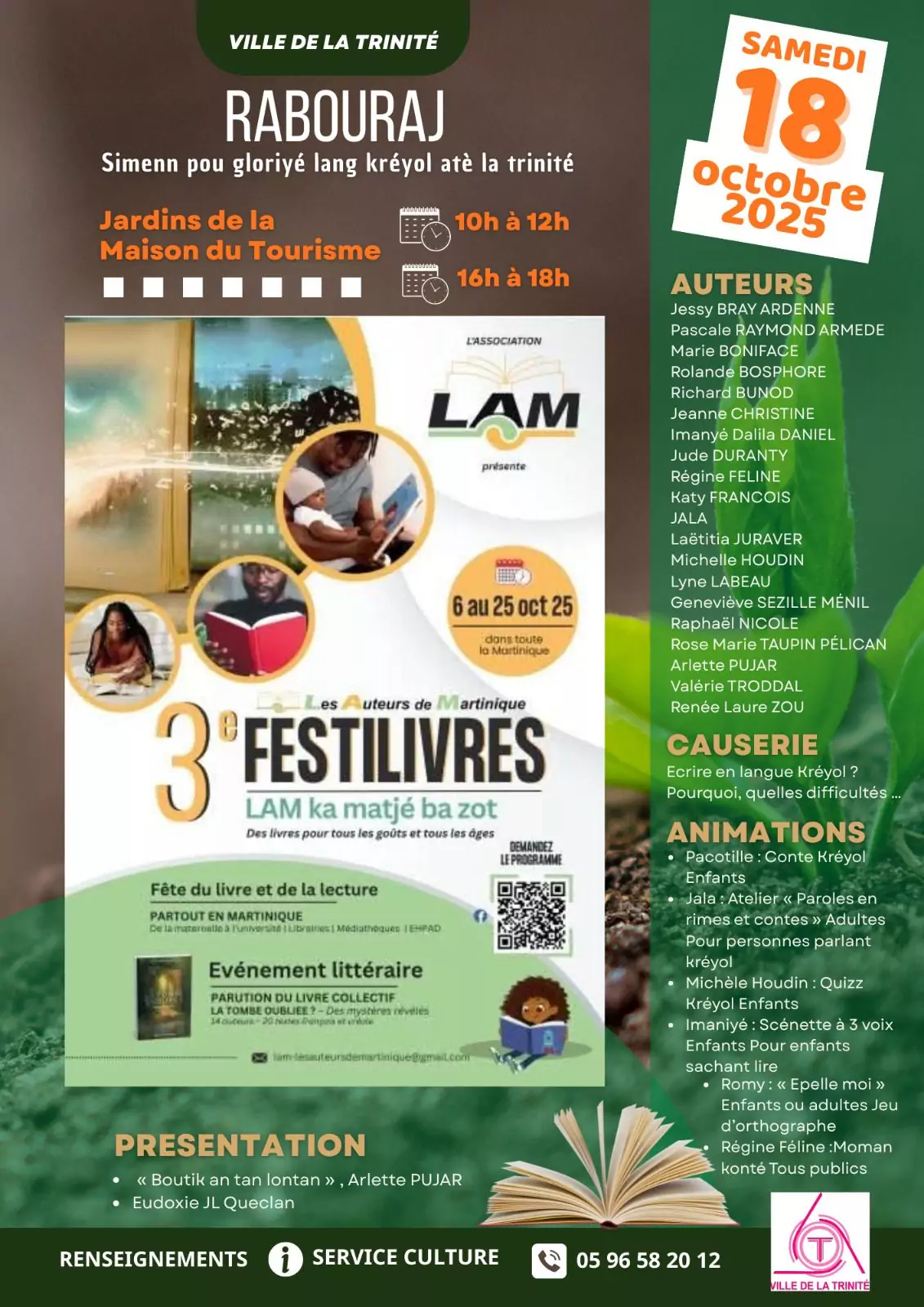 + d’infos : 05 96 58 20 12 (Service de la Culture)