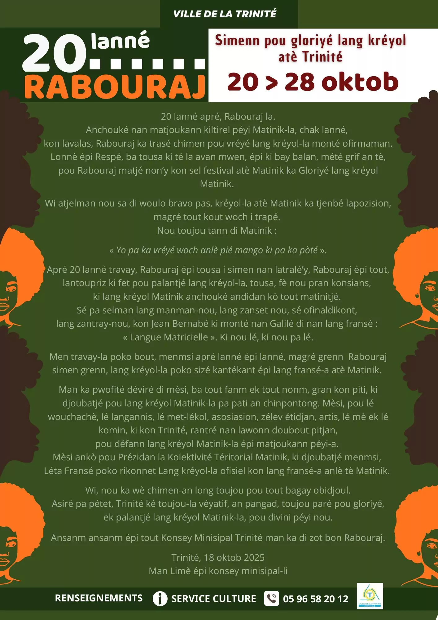 + d’infos : 05 96 58 20 12 (Service de la Culture)