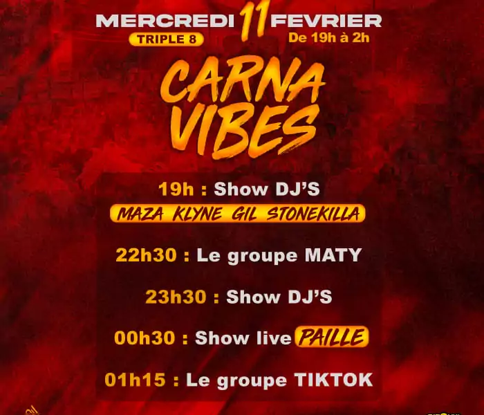 SOIRÉE CARNAVALESQUE « CARNA’VIBES » AU TRIPLE 8, DUCOS