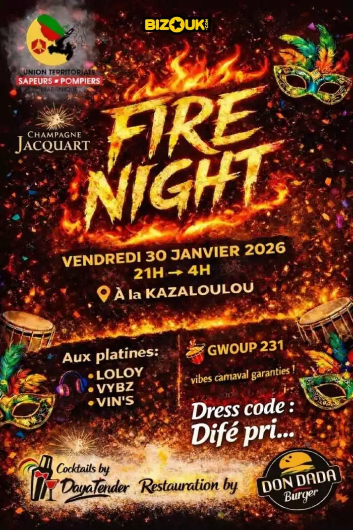 SOIRÉE CARNAVALESQUE « FIRE NIGHT » À KAZALOULOU, LE ROBERT
