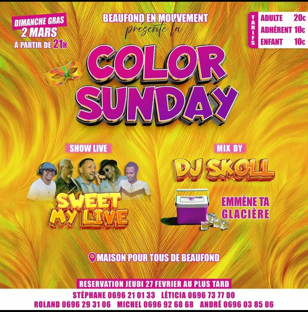 SOIRÉE DIMANCHE GRAS « COLOR SUNDAY » À LA MAISON POUR TOUS DE BEAUFOND, LES TROIS ÎLETS
