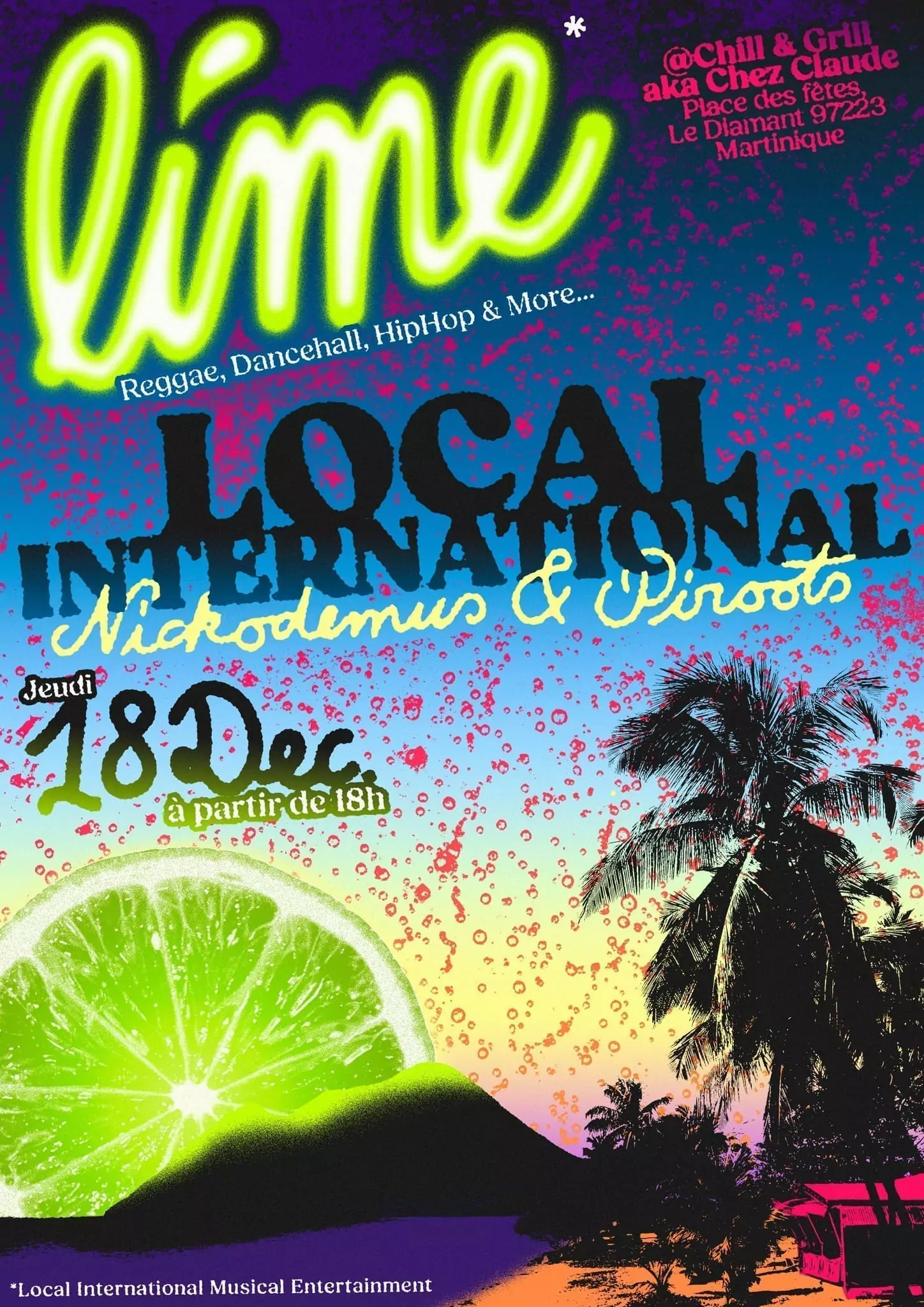 SOIRÉE DJ « LIME » AU CHILL & GRILL AKA CHEZ CLAUDE, LE DIAMANT
