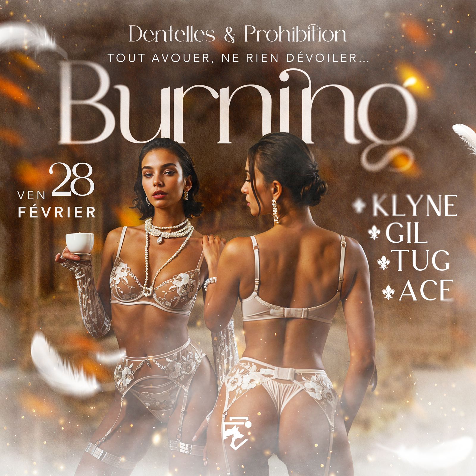 On te présente la BURNING édition DENTELLES & PROHIBITION où l’interdit rencontre la chaleur de la sensualité féminine