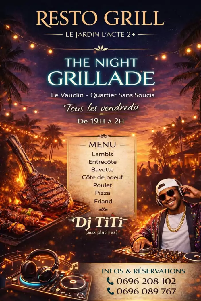 SOIRÉE DJ « THE NIGHT GRILLADE » AU RESTO GRILL LE JARDIN L’ACTE II+, LE VAUCLIN