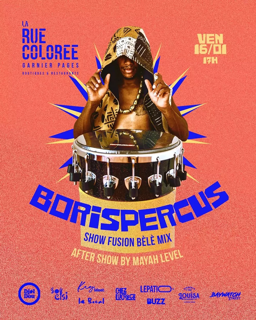 SOIRÉE FUSION BÈLÈ MIX « BORISPERCUS » DANS LA RUE COLORÉE, FORT DE FRANCE