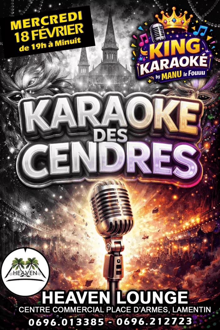 SOIRÉE KARAOKÉ « KARAOKÉ DES CENDRES » AU HEAVEN LOUNGE, LE LAMENTIN
