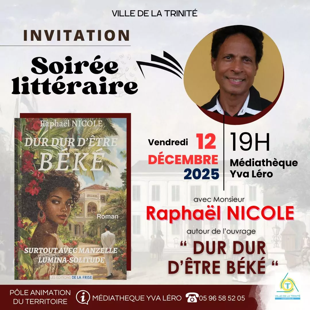 SOIRÉE LITTÉRAIRE « DUR DUR D’ÊTRE BÉKÉ » PAR RAPHAËL NICOLE À LA MÉDIATHÈQUE YVA LÉRO, LA TRINITÉ