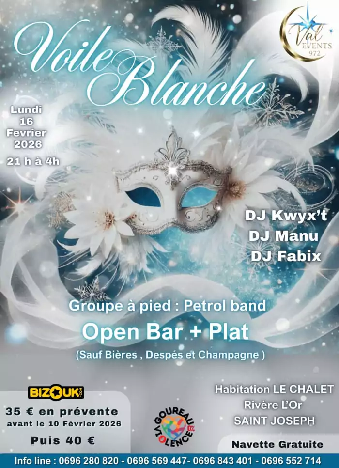 SOIRÉE LUNDI GRAS « VOILE BLANCHE » À L’HABITATION LE CHALET, SAINT JOSEPH