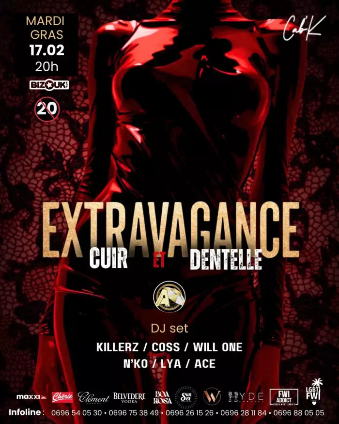 SOIRÉE MARDI GRAS « EXTRAVAGANCE CUIR ET DENTELLE » AU CAB’K, FORT DE FRANCE
