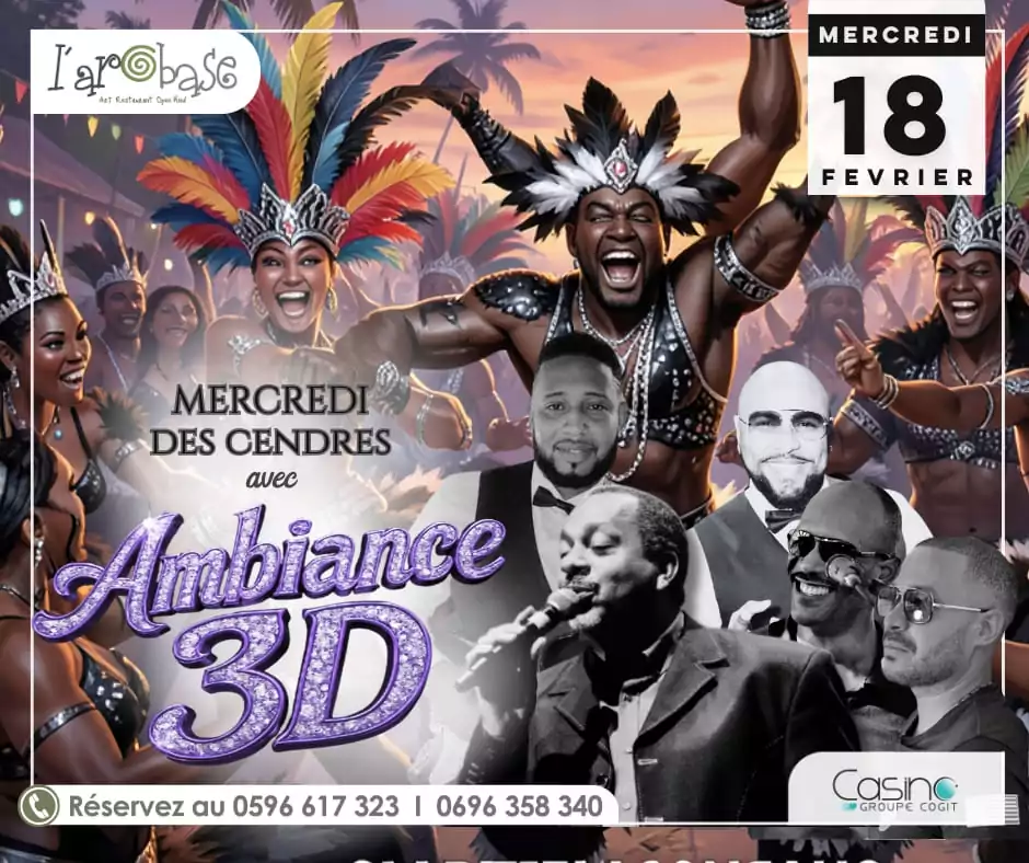 Rejoignez nous à l’Arobase pour clôturer l’édition 2026 du Carnaval avec le groupe mythique AMBIANCE 3D.