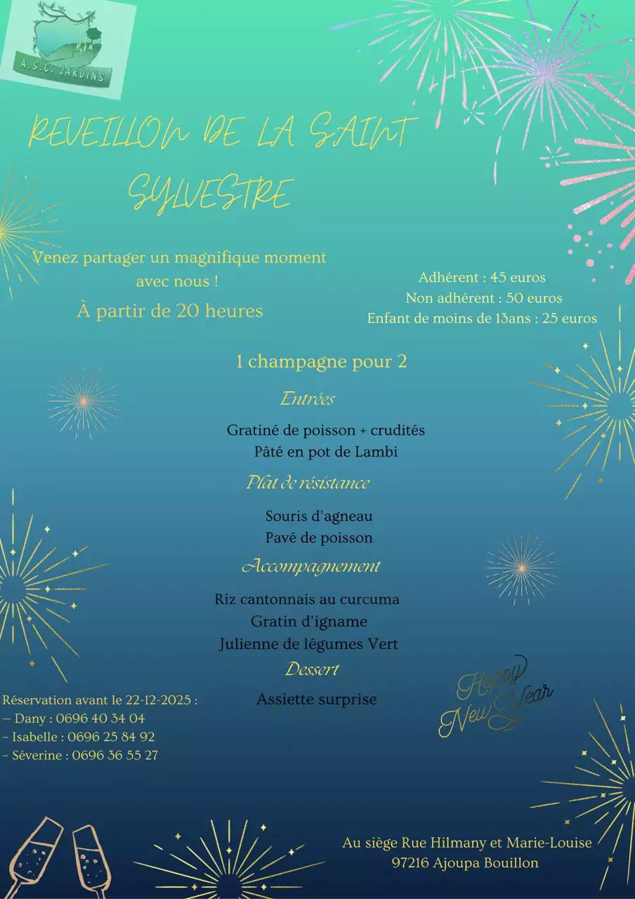 L’ASC Jardins vous invite à célébrer le Réveillon de la Saint-Sylvestre dans une ambiance festive et conviviale