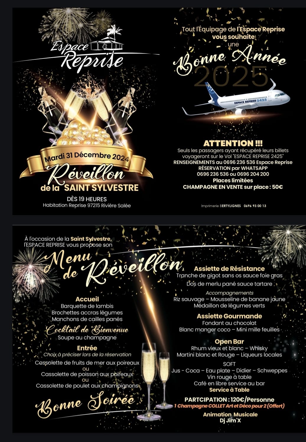 SOIRÉE RÉVEILLON SAINT SYLVESTRE À L’ESPACE REPRISE À PETIT BOURG, RIVIÈRE SALÉE