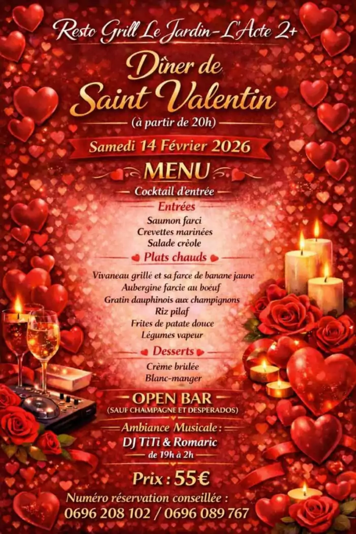 SOIRÉE SAINT VALENTIN AU RESTO GRILL LE JARDIN L’ACTE II+, LE VAUCLIN
